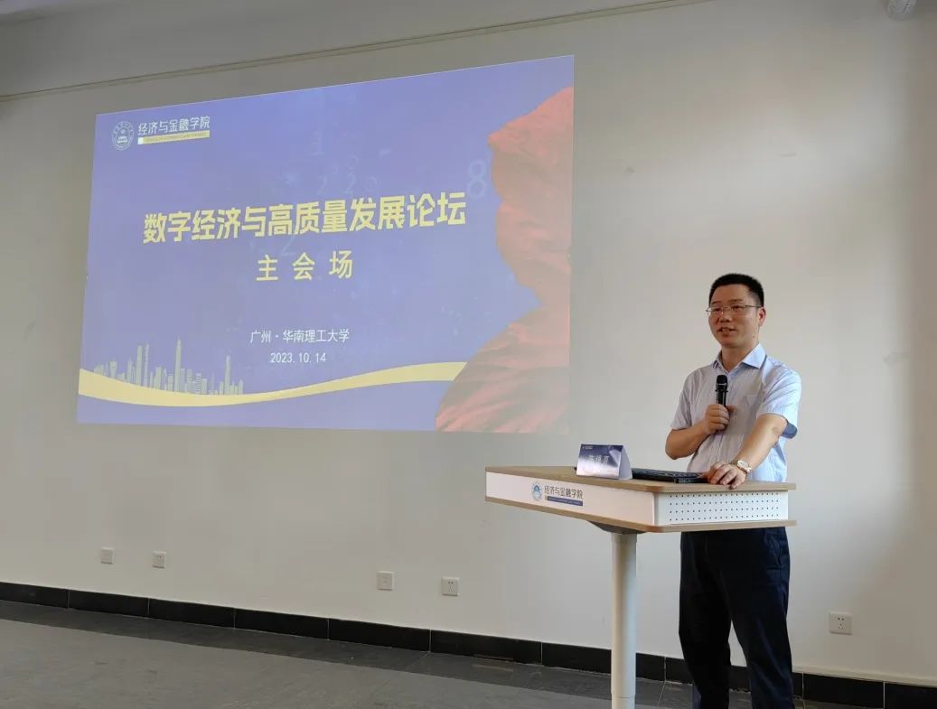 为贯彻落实党的二十大精神,促进数字经济与高质量发展研究领域的学术交流,2023年10月14日,由厦门大学学报(哲社版)编辑部和华南理工大学经济与金融学院联合主办的“数字经济与高质量发展论坛”在华南理工大学大学城校区成功举办。南京大学数字经济与管理学院任保平教授,华南理工大学经济与金融学院党委书记黄国清、院长孙坚强教授、副院长陈镇喜教授,厦门大学学报(哲社版)编辑部主任、厦门大学经济学院黄寿峰教授,华东理工大学商学院宋福铁教授等专家领导,以及来自清华大学、浙江大学、东南大学、中国人民大学、厦门大学、华南理工大学、吉林大学、上海财经大学、中央财经大学、暨南大学、南昌大学、福州大学、华南农业大学、东北财经大学、贵州大学、华侨大学、华东政法大学、广东外语外贸大学、南华大学、西南科技大学、闽南师范大学等高校的80余名师生参加了本次论坛。