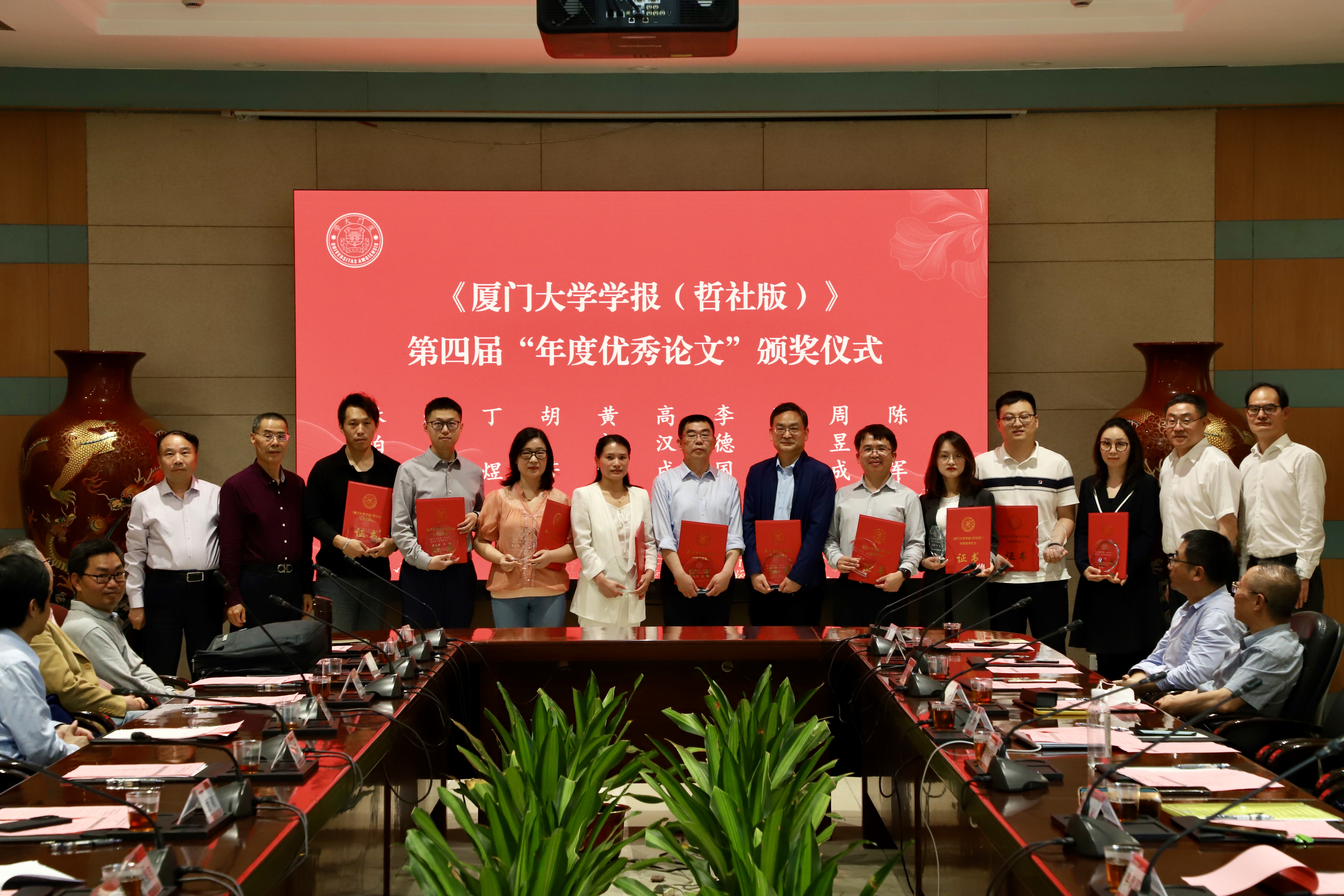 4月19日下午,《厦门大学学报(哲学社会科学版)》(以下简称“学报”)第四届“年度优秀论文”颁奖典礼暨期刊高质量发展研讨会在厦门大学颂恩楼215会议室举行。校党委常委、副校长方颖,校党委常委、宣传部/教师工作部部长高和荣,学报编辑部主任黄寿峰,厦门大学教育发展基金会秘书处、文科期刊中心、学报编委会委员、学报作者和评审专家等相关代表人员参加会议。会议由学报主编陈振明主持。本届共有10篇论文获“年度优秀论文”奖。