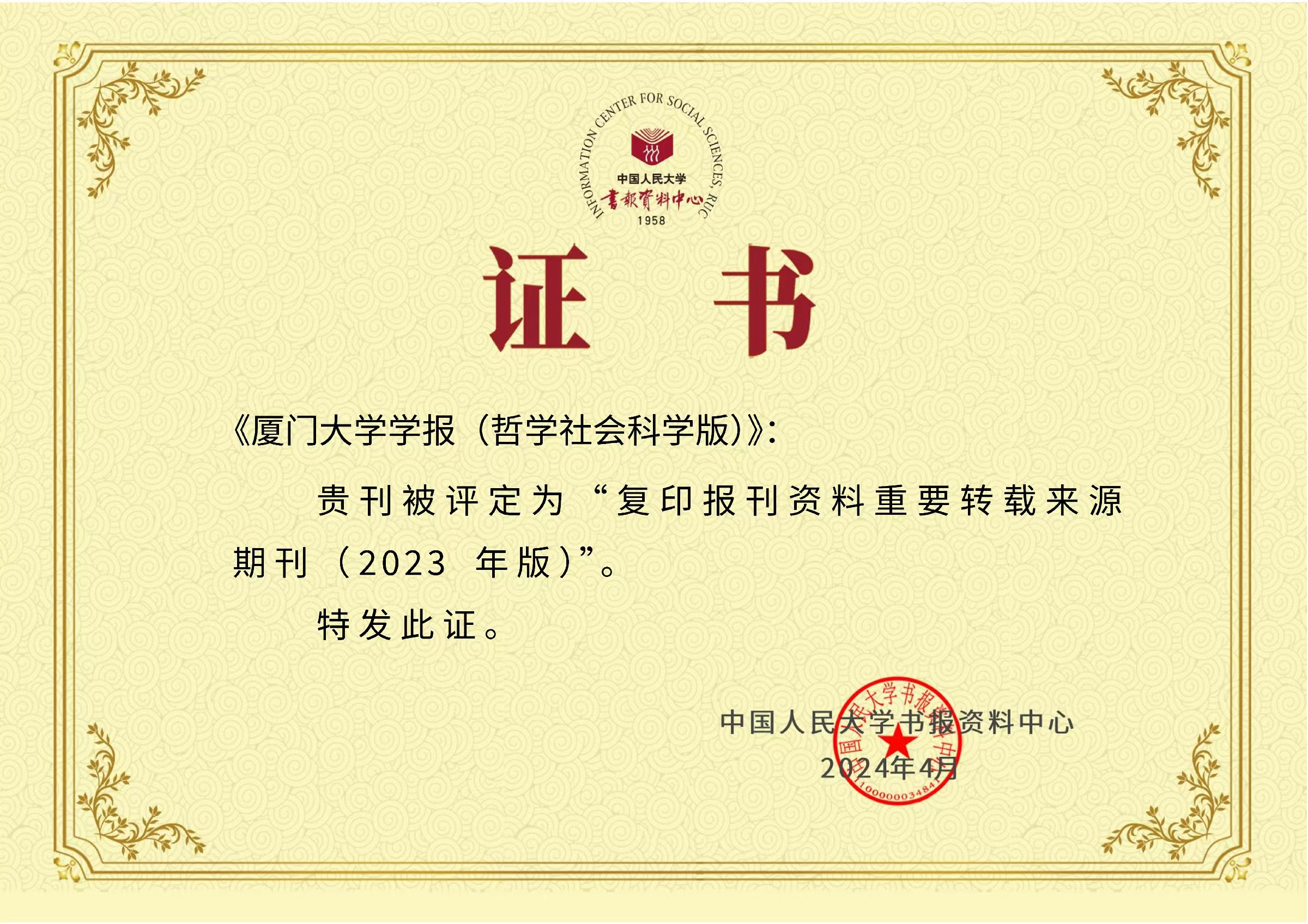 4.《厦门大学学报(哲学社会科学版)》被评定为“复印报刊资料重要转载来源期刊(2023年版)”