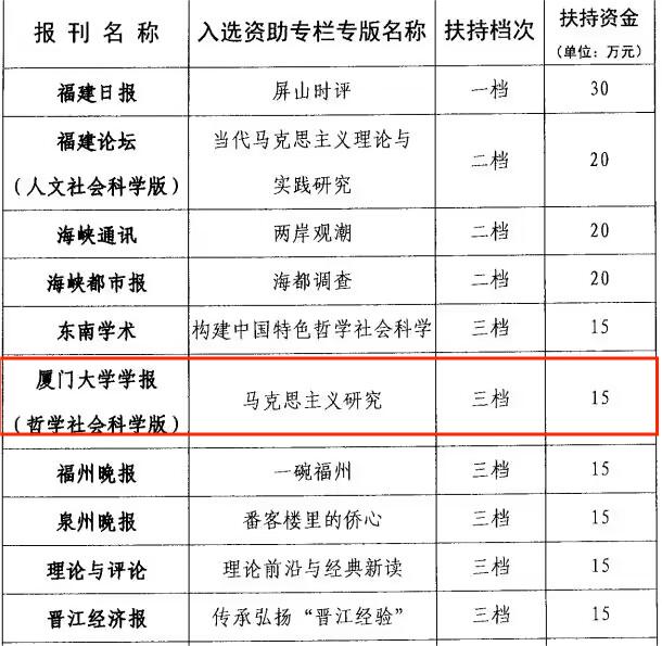 近日,福建省新闻出版局公布2023年福建省报刊十大名栏目扶持资金评审结果,我刊《马克思主义研究》栏目入选,获得三档资助15万元。