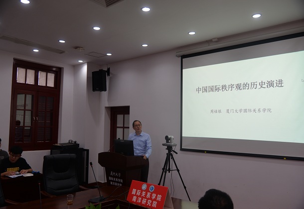 2020年11月23日下午,学报哲社版党支部与国际关系学院/南洋研究院在职教师党支部、博士生党支部联合开展支部共建活动。本次活动以主题党日政治学习的形式,邀请厦门大学国际关系学院/南洋研究院周桂银教授给大家作题为“中国国际秩序观的历史演进”的学术讲座,活动由厦门大学国际关系学院/南洋研究院冯立军教授主持。